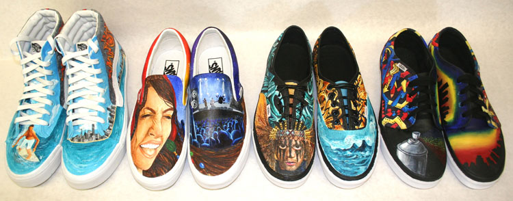 The contest is part of the Vans Custom Culture program, which invites schools across the country to customize their own shoes for a chance to win money for their art programs. Registered high schools were each sent four pairs of Vans sneakers in February. Students then had about three weeks to design the sneakers based on four themes — art, music, action sports, and local flavor — before submitting images to Vans in early April. Vans selected semi-finalists by April 22, when the vote for the final round was opened to the public.