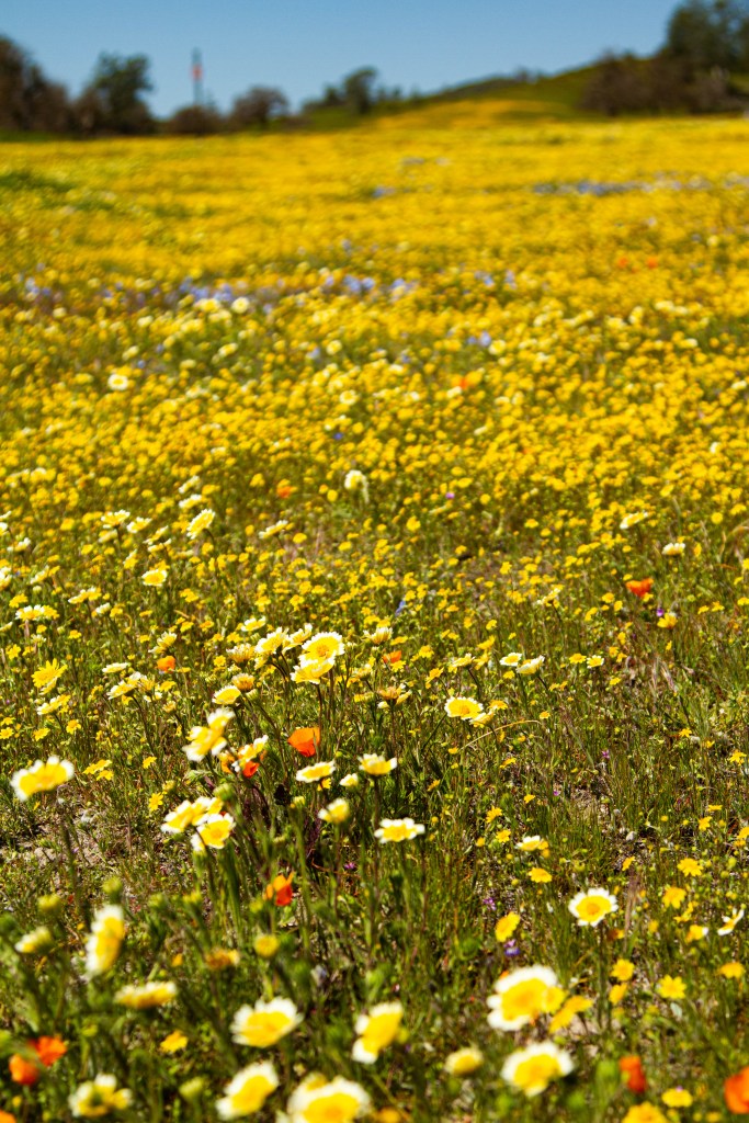 At Shell Creek Road and the Carrizo Plain National Monument, just a few hours north of Santa Barbara, the grasslands and creeksides are covered in a kaleidoscope of poppies, lupines, goldfields, fiddlenecks, phacelias, and owl’s clover, with the Temblor Range turned a bright shade of daisy yellow in the background.