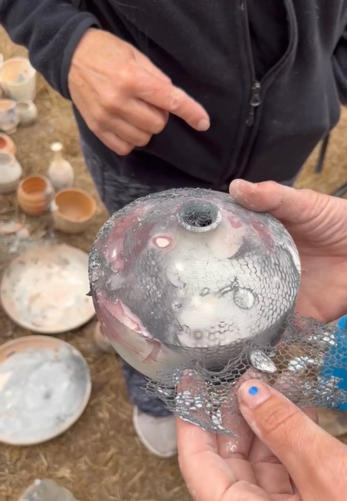 Watching the clay transform is an unpredictable but exhilarating process, Klapp said. Since the temperature in the pit varies overnight, you never know which pieces will “survive” the firing, or what the final design outcomes will be.