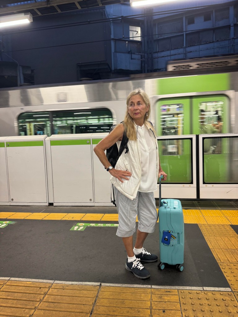 I love the heat, even humidity, but when every day in crowded Tokyo is in the 90s, we find not only beauty but also reprieve in the air-conditioned museums in Ueno Park, one of the country’s first public parks, and a few stops on the Yamanote line from our hotel near the Shinagawa Station. I admit I have a post-COVID PTSD about crowds, so dread the anticipated sardine-tin packed train; but to my delight, it is cool, comfortable, and so clean you could picnic on the floor! Japanese people have learned to live on a long, slender set of small islands by fostering a healthy respect for personal space combined with a sense of the common good. For the world’s most populous metropolitan area at 37 million people, Tokyo is one of the safest, cleanest, and innovative cities. Travel around the city by train exemplifies this. No pushing, no shoving, no litter, no cell phones, or talking on the train. Above the seats, little videos of animated pigs and bears sell ramen or skin crème, and also an easily read map.