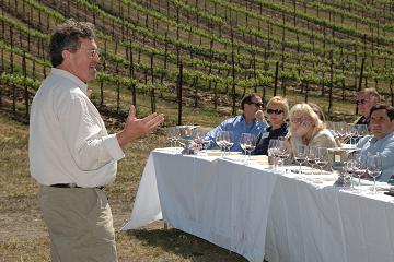A brief reception with hors d’oeuvres and wine tasting in an old, rustic barn of a gift shop was followed by a catered dinner in another large barn. Four rustic courses would arrive, as would 10 or so wines. The dinner (served on a tablecloth white as snow) evoked all things delicate and fine while the old wooden surroundings evoked the rural, rough country life that winemakers dabble their fingers in. Meanwhile, a microphoned discussion between the Symposium’s winemakers, moderated by Sommelier Neptune, focused largely on the future of Syrah. “Will Syrah become the next Pinot?” asked Neptune. “Will it stand up in the wake of the movie [Lenghthwise]?” “Is the American public confused by high-end Syrah?”