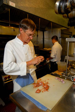 Other favorites Downey noted include his duck with peach chutney, and in the winter season, a ragout of lobster with local chanterelles, smoked bacon, flageolets, tomatoes, and leeks; Liz concurred, adding that the lobster rago»t is “an aromatic facial.” Downey explained, “Really it’s just a hearty fish stew brought to higher levels with those ingredients. All those elements just nestle so well; they just belong.”