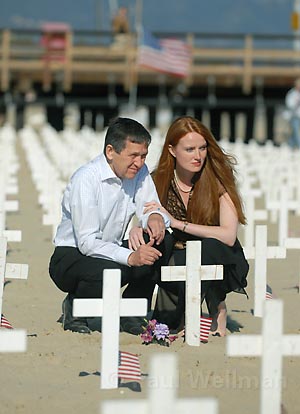 On Sunday, Kucinich visited Arlington West, a memorial of crosses organized each week by the local Veterans for Peace to remember the soldiers killed in the Iraq War. After walking through the memorial with his wife, and placing flowers at some of the crosses, Kucinich addressed a crowd of people during a short speech.