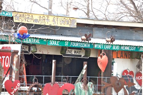 Apparently not – just expressing what he calls Kansa Art, named after the original inhabitants of the area, at least before they were forcibly removed from the area. As I leave town I find myself refreshed by the not-so-delicate sensibilities expressed in the sculptures. I’ll be leaving Kansas soon and Mullinsville, M.T. Liggett and his Kansa Art seem just the way to exit.
