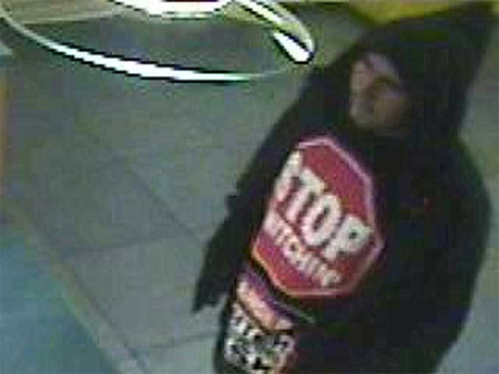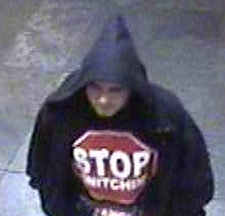 The Sheriff is now sending out photos of one of the suspects in hopes that someone might recognize him. Ironically, the man depicted is wearing a sweatshirt bearing the slogans “Stop snitching” and “Snitch at your own risk.” Anyone who does should call the department’s criminal investigations division at (805) 681-4150.