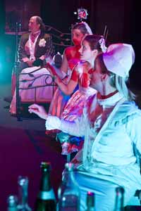 The songs, written and performed by Jim Connolly and Anna Abbey, with vocal assistance from the female three-quarters of the cast, are great. They throb with life and ooze the kind of jubilant passion that makes you want to roll down the car windows and turn up the radio. The story has been freely adapted from Nikolai Gogol and owes as much to its creators’ collective imagination as it does to the Russian original. In Gogol’s play, The Marriage, a single middle-aged man approaches marriage through the services of a matchmaker. In Lit Moon’s The Wedding, three potential brides vie for the affections of a solitary-and entirely silent-man, played to comic perfection by Hoffmann.