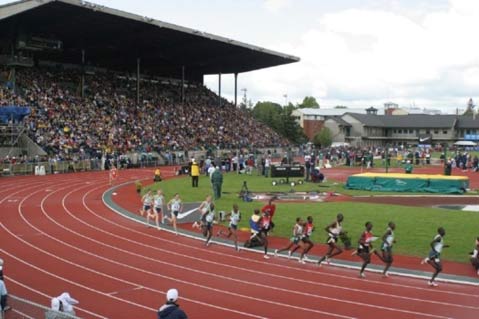 I wondered if Eugene’s enthusiasm for track and field had dimmed over the years, along with the memory of Steve Prefontaine‘s electrifying races at Hayward Field, the University of Oregon track. “Pre” died in a solo car crash hours after his last race on May 30, 1975. Bill Bowerman, the legendary Oregon coach who introduced the fun-running lifestyle from New Zealand to the Pacific Northwest, creating a jogging boom that spread across the nation, has also passed on. The sport he loved has been dragged through the mud by numerous drug scandals.
