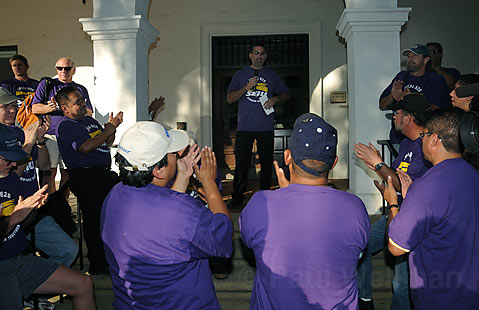 Nearly 80 Santa Barbara City employees associated with the Service Employees International Union, which represents about 840 city workers, rallied in front of City Hall Tuesday evening, hoping to pointedly but politely nudge city councilmembers to pay more attention to their negotiations with city management. The contract for two of the union’s bargaining units expired September 30, and thus far, neither side is willing to go public with details of contract talks. While the union enjoys considerable political pull, the recent credit crisis – coupled with the State of California’s ongoing budget mess -promise to make city bean counters more fiscally conservative.