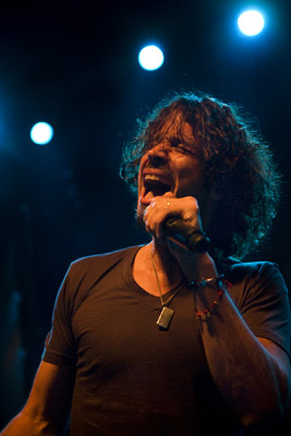 Halfway in, Cornell’s five-piece backing band exited the stage and made way for the singer to play stripped-down versions of “Black Hole Sun” (to which the delighted audience sang the chorus at Cornell’s beckoning), “Fell On Black Days,” and “Getaway Car.” Considering he has a new album, Scream (produced by recording industry phenom Timbaland), in post-production, it was surprising that Cornell only included three new songs in his set list.