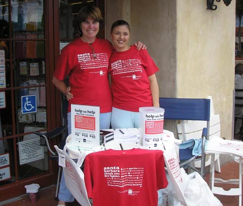 Each shirt and bag have a graphic designed by AIGA that thank the firefighters, list the dates of the three fires, and give the acre and structure destroyed count for each fire. Shirts range from $10 to $12 and tote bags are $5. They can be purchased at the AIGA stand, online at santabarbara.aiga.org, at Vices and Spices, or Sheer Artistry.