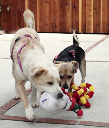 Veronica is a two-year-old spayed female diminutive Aussie mix, 27 pounds, visually impaired but don’t tell her that; she doesn’t know. Violet is a two-year-old spayed female beagle/terrier mix, 15 pounds, who fancies herself as being Veronica’s seeing eye dog. Both pups are sociable, confident, good with dogs, kids and cats, love to play, love to snuggle and are self-entertaining. Life-long buddies, they need to go to the same home together.