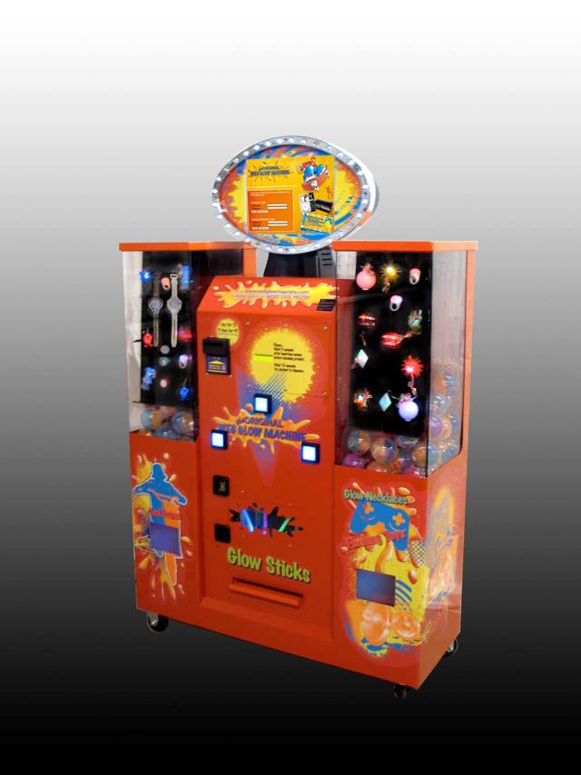 The Web Glow Machine is a vending machine that sells glow-in-the-dark novelty items with flashing LED lights. Pelto invented it to solve a number of logistical sales problems. He originally imported and sold the flashing toys to retailers, but they did not sell evenly. It was also difficult to display them because their batteries would die. His machine includes display cases that power the toys through electricity from a wall socket. And toys are distributed to buyers randomly so inventories sell evenly. (This is also a sales advantage since kids might be willing to make multiple purchases in order to get a specific toy.)