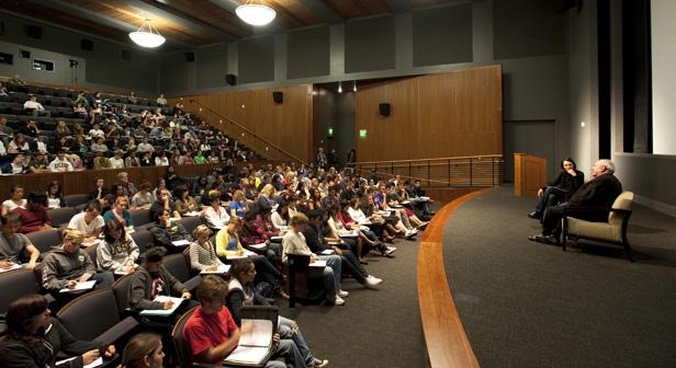 A physical component of the Carsey-Wolf Center is the Pollock Theater, a new state-of-the art venue provides space for year-round programming of a diverse array of films and filmmakers. Named for Joseph and Helene Pollock, the 298-seat theater is the heart of the center, Hutton noted, serving as a classroom by day and a public theater at night where students, industry leaders, and members of the community may gather.