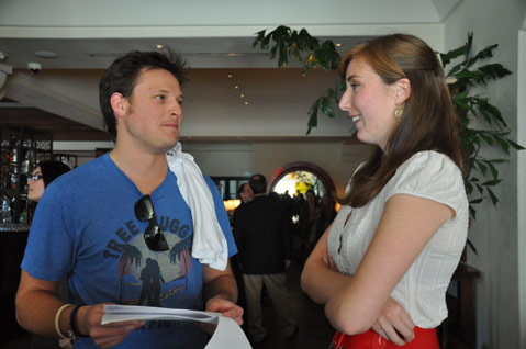 Rumble was paired with scriptwriter Katherine Waskul of UCSB, a soft-spoken yet talented writer and film major, and for the last several days the two of them have been leading a veritable army of more than a dozen Brooks students, filmmakers, and actors. Waskul’s script tells the story of a Middle Eastern scientist at UCSB who is treated with growing prejudice in the days after 9/11. It’s a great script, and everyone on set was thrilled that they were the team to bring it to life.