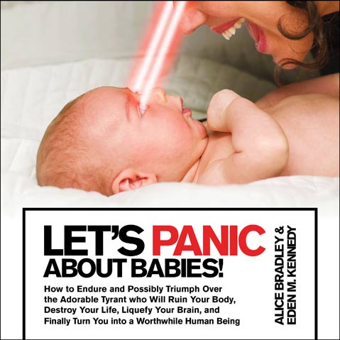 Providing a much-needed antidote to such advice is mommy blogger Eden Kennedy (fussy.org), who, with New York City mommy-blogger Alice Bradley, coauthored the baby book parody Let’s Panic About Babies!, which was released on March 1. Subtitled “How to Endure and Possibly Triumph Over the Adorable Tyrant Who Will Ruin Your Body, Destroy Your Life, Liquefy Your Brain, and Finally Turn You into a Worthwhile Human Being,” the 266-page irreverent howl is certain to become a fixture at baby showers, and just may save some overwhelmed mommies from going completely insane.