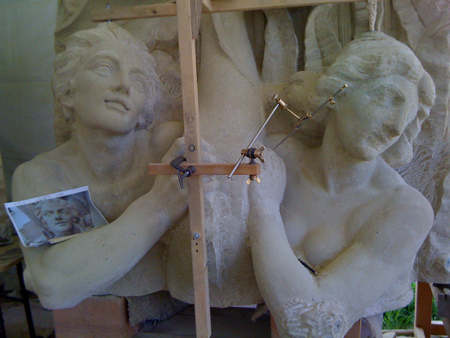 Over the past seven months a small army of stone carvers has been working diligently under the cover of a white tent on the front lawn of the Santa Barbara Courthouse to re-create the Spirit of the Ocean Fountain. Thousands of hours later and with the generous support of the community—the carving is nearing completion. As soon as Thursday (May 18, 2011) the first of seven carved sandstone blocks will be moved into position to take its place in a new life of delighting the more than 150,000 visitors to the Santa Barbara Courthouse annually. The Spirit of the Ocean Fountain is a popular spot for visitors to take pictures and for the past few years that opportunity had been crumbling away, one grain of sand at a time—until the Courthouse Legacy Foundation accelerated its plan to replace the failing sculpted piece. The project began in 2004 with the Fountain Team researching the location of the original stone quarry that provided the original stone used on the courthouse and fountain—tracking down historic photographs and preparing a full-size foam replica to be used during the carving operation. Next was the logistics planning to get the stone from the mountain to the courthouse front lawn, organize the carving “studio” and secure the needed funding. Ultimately the project team became a group of 15 individuals with responsibility over four main areas: Research, Funding, Execution and Project Management. The project is scheduled to be complete by July 4, 2011 with a celebration event to be announced soon. The Santa Barbara Courthouse is a City of Santa Barbara Historic Landmark, on the National Register and a State and National Historic Landmark. The Santa Barbara Courthouse Legacy Foundation is a non-profit 501(c)3 organization whose mission it is to Conserve, Preserve and Restore the architectural features of the Santa Barbara Courthouses for current and future visitors—Building on a Legacy is their goal.