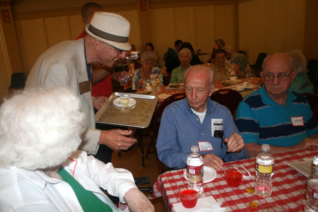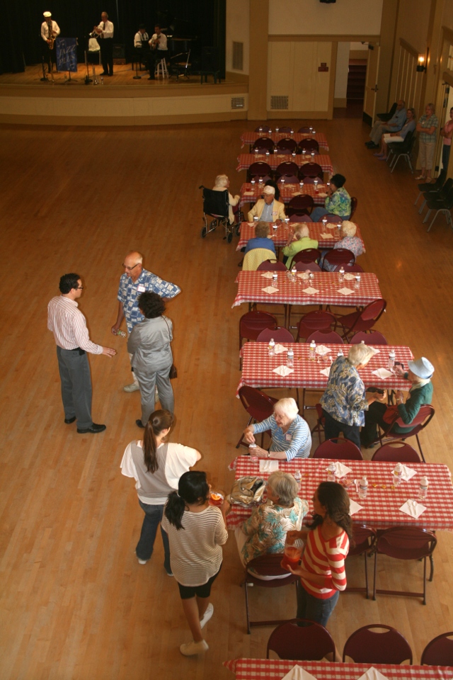 Mayor Helene Schneider and Councilmember Grant House stopped by to serve ice cream and welcome the seniors to the ballroom of the newly renovated Carrillo Recreation Center, which will have its grand reopening later this month. Lu Gilbert, an AARP member and now 93, recalls the very first birthday social in 1985. “It was in this very room,” Gilbert said. “All the organizations would put up their tables and try to get us to join.”