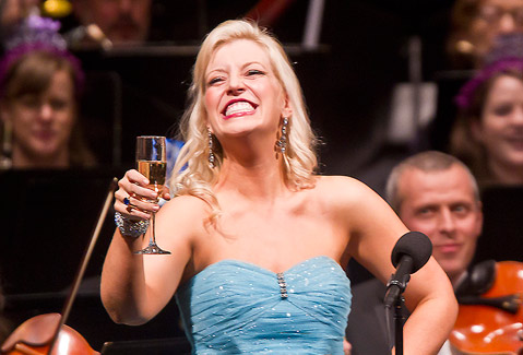As guests arrived in their New Year’s Eve finery and proceeded to don shiny party hats and toot noisemakers, one thing became immediately obvious: The Granada makes an ideal venue for a sophisticated and festive pops concert. With its elegant lobby and balcony-level founders’ room spaces, there’s plenty of room for people to gather and enjoy one another’s company before making their way into the hall, and that’s exactly what the diverse and happy crowd did this past Saturday night. Guest Conductor Robert Bernhardt has mastered the light humor and verbal hijinks associated with such evenings, and soprano Mela Dailey made a glamorous counterpoint to Bernhardt’s free flow of puns and witticisms. The first three selections were all from Johann Strauss Jr., the uncontested master of the waltz. In this, the Santa Barbara Symphony followed in the path of the Vienna Philharmonic, which has played a New Year’s concert on January 1 of every year since 1939 that is always packed with music by the Strauss clan. Under the baton of Bernhardt, the symphony made a fine showing on this portion of the program, especially the Emperor Waltz, which is at least as irresistible as the more familiar Blue Danube.