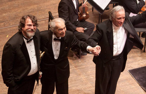 Fitting for a program comproed entirely of American music, this concert gathered all kinds of influences together and stirred them up into a big gumbo. It was not quite a melting pot, as the individual sources for the most part remained distinct, but there was a strong sense of hybridity and musical cross-pollination to every piece. In the opener, a Santa Barbara premiere, Chris Brubeck and his father, Dave, paired 22 minutes of gorgeous and varied orchestral writing with more than 100 photographs, most of them by, but some of them of, the great American artist Ansel Adams. The photos were projected on a large screen that hung above the orchestra, and the experiment, which could have fallen flat, actually worked very well. Adams, who was first seen in several portraits as a child and then again as a young man, makes a wonderful kind of hero for the broadly American orchestral music written by the Brubecks.