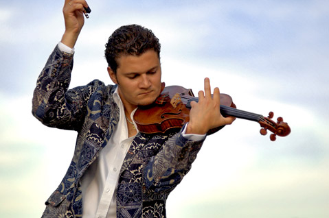 From there the orchestra took off on the afternoon’s most intriguing flight of fancy, the 2003 concerto for violin and orchestra of American composer Michael Daugherty called Fire & Blood. The soloist, Alexandre Da Costa, was exemplary, and the piece, which Daugherty composed to honor the Mexican artists Frida Kahlo and Diego Rivera, and in part to commemorate their work in Detroit on a Ford Motor Company–sponsored mural project, was a fascinating mix of influences, ranging from conventional romantic concerto writing to mariachi. The most interesting effect occurred in the interplay between the violin and the heavily featured marimba. Daugherty, who has acknowledged influences as disparate as Karlheinz Stockhausen and the cartoon music of Raymond Scott, would seem to be that rare composer who is equally at home in multiple idioms and who is capable of weaving a plausible concerto out of extremely disparate elements. For the young soloist Da Costa, the Daugherty piece clearly represents an opportunity to show off and to pay homage to the industrial neighbor to the south, which in his case is Michigan, as Da Costa is a Canadian citizen. When it was done, Da Costa took several curtain calls and answered the applause with a pre-intermission encore. His choice — “Manic Depression,” composed by American guitarist Jimi Hendrix — came as quite a surprise, but his clever and delightfully dry arrangement, which he played as a duet with cellist Trevor Handy, went over extremely well.