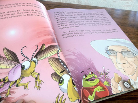 While my author as a character was depicted as the funniest of the frogs with a moronic pointed head, we noted that none of the frogs became princes. The language and illustrations were difficult to coordinate as we are 10,000 miles apart and all communication was by email. The mistaken species and gender illustrations took three interchanges to fix with a ton of laughs on two continents. Wardrobe changes were required and when it was easier, I simply re-wrote the text to fit the illustrations. This was a slow, slow process, but one where we succeeded each time.