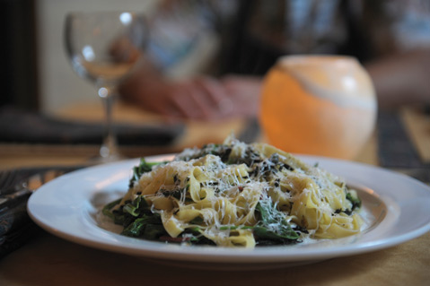 He began serving lunches a couple of days a week in the space — another hidden gem tucked into the Funk Zone — and then, in June 2011, he thought, why not do a dinner, too? Glazer’s weekly dinners are held on Fridays and have been, thus far, all vegetarian, four-course affairs designed to showcase his pasta — so fresh some diners find themselves eating it when it’s just an hour old. “I just wanted that creative expression,” he said. “Artistically, it gets the juices flowing again.”