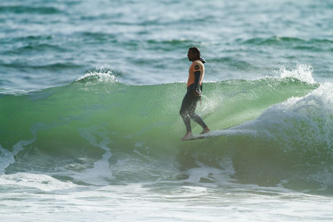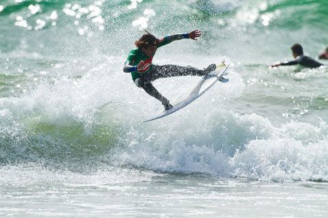 Day one of the contest was supposed to be the less impressive surf-wise, according to forecasters, and if you were down at the Queen of the Coast on Friday evening and saw the wind-tattered thigh-slappers on hand, your hopes for good waves come Saturday morning were anything but, well, hopeful. But that is the beauty of Mother Nature; she doesn’t always do what she is predicted to, and by the time the first heat of the Boys Division hit the water at 7 a.m., the waves were a silky smooth waist- to shoulder-high with even bigger sets. And so began a darn good day of surfing. The glassy conditions held all day long for the most part, and the surf, with some afternoon sets enjoying head-high drops, continued to deliver the goods through the ebb and flow of the tide. The better waves were connecting from the corner of the Indicator (top of the point) all the way through to the Rivermouth section, offering up racing walls and the occasional thin-lipped bit of tube time for the savvy wave rider. With a couple thousand surf fans mobbing the beach, early round standouts included Micky Clarke and Henry Hepp in the Boys Division, Jabe Swierkocki and Tommy McKeown in the Gremlins, Abby Brown in the Wahines, Vince Perry and Max Cail in the Masters, Dennis Rizzo in the Men’s, and Bobby Martinez and Killian Garland in the Pros.