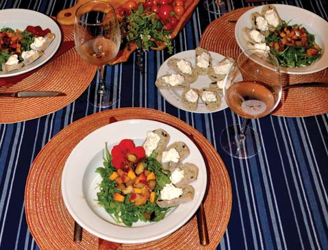 • Stonefruit bruschetta and arugula salad, goat cheese crostini