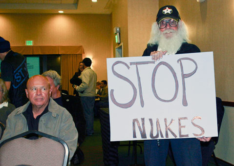 Last week’s NRC meeting was packed. More than 200 people braved the season’s first rain to deliver their two cents’ worth, despite a painful PA system with too much reverb, echo, and feedback. For nearly six hours, it went, ’til almost midnight. Twenty NRC employees — from Dallas, Texas, and Washington, D.C. — were on hand to take down every word. A healthy smattering of pro-nukers showed up. Diablo Canyon employees were conspicuous in their good manners, invariably thanking speakers from the other side — even those inclined to shout truth to power rather than speak it — for engaging in “a robust” discussion of the issues.