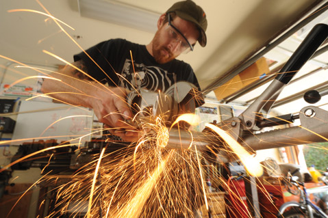 There are two answers to the question why Rudolf (Rudi) Jung fabricates bicycle frames. The first is that he stands a lanky 6’3″ tall. While people with bodily dimensions that aren’t too far on either extreme of the bell curve can usually find an off-the-shelf bike that fits well, Jung never rode a bike that felt right until he up and made his own. The second reason, and more telling answer, is that Jung is the type of person who, if he grew up in Alaska, would forge his own dogsleds out of used tomato soup cans.