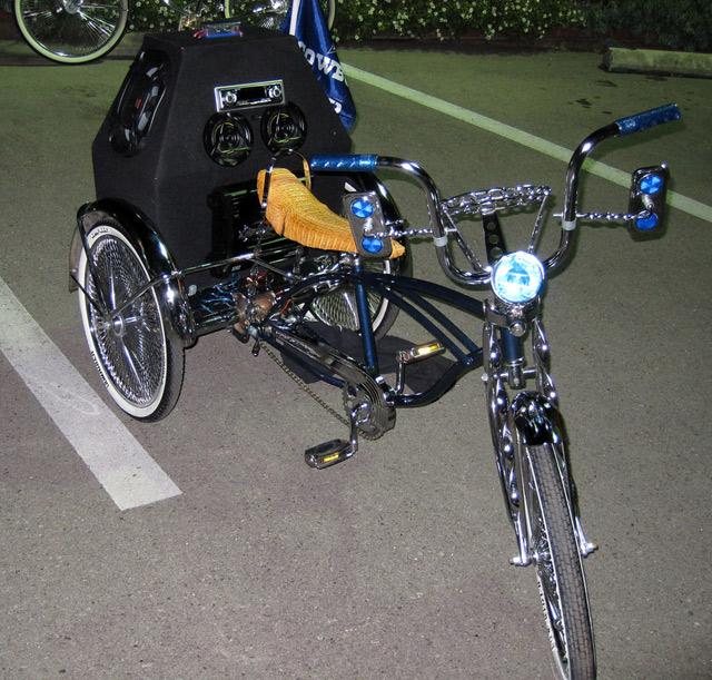 There are cyclists who ride stripped-down fixie bikes without brakes, front and rear derailleurs, fenders, or a freewheel. These bikes are light, fast, and simple to fix. At the other extreme, low riders customize their bikes to resemble chrome-plated, highly decorated and painted automotive hot rods. These bikes often feature a long, curved banana seat with a sissy bar and very tall upward-swept ape hanger handlebars. A lot of chrome components, spring-action suspension for the front fork, fenders, and wheels with up to 144-chromed spokes are common accessories for these custom bicycles.