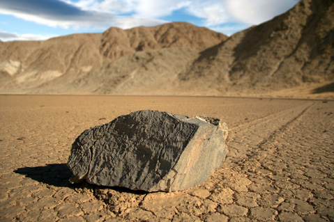 In a landscape dominated by marvelous natural oddities, no location fascinates more visitors to Death Valley National Park than The Racetrack, a cracked-earth playa where rocks big and small magically move from place to place, leaving distinctly smooth tracks across the otherwise uniform lake bed as their only evidence. For decades, if not centuries, the phenomenon mystified even the most diligent researchers, becoming a standard passage in geology textbooks, prompting more than one dozen scientific inquiries, and provoking all manner of possible causes, from tricks by frat boys to the handiwork of little green men.