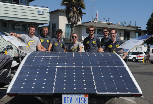 Incorporated into the design are other advanced technologies, such as a system that can communicate with traffic lights to determine if they are about to change from red to green. The car usually travels in the middle lane of the highway, and Hoefsloot said about half of the people who pass them take their picture. From here, the group plans to meet with companies in San Francisco, Hoefsloot said. The team will compete in the next world challenge in Australia in 2015.