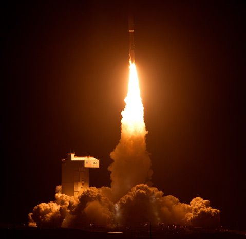 At 7:19 p.m. on Friday, the largest rocket to ever launch from the west coast shot from Vandenberg Air Force Base into low orbit where it released a highly classified spy satellite. The Atlas V rocket, with its four solid rocket boosters and a new second stage engine design, produced around 2 million pounds of thrust that rumbled through Santa Barbara and lit the evening sky. The launch was postponed Thursday night because of bad weather. Watch a video of the show below.
