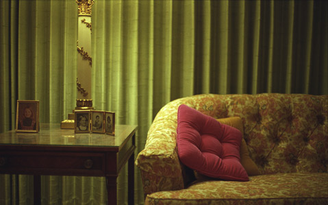 For Holler, the open secret of her family’s nuclear past has set off the artistic equivalent of an atomic reaction. Although the content and style of the images in Nuclear Family vary widely across the three sections of a trilogy, all the images resonate with Holler’s intense personal yearning for resolution. The cumulative impact is an absorbing and bittersweet sense of inexpressible dread. In chapter one, “Ruby and Willie,” Holler prowls through her grandparents’ home in Richland, Washington, her camera loaded with color film and her viewfinder trained on the objects that reveal her grandfather’s obsessive relation with the past. When Willie’s wife, Ruby, passed away in 1978, he retreated to a single room in the basement, carefully preserving the rest of the house as if it were a museum for the next 30 years. Each image reveals the heartbreaking sincerity of this gesture of resignation through an emphasis on the fragmentary and the everyday. The tone and palette is like vintage Eggleston, but the feeling — and the meaning that drives it — is totally new.