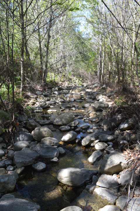 The hike begins at the preserve parking lot and passes through Hollister Meadow, a calming green expanse situated along the creek. The grassy esplanade is a centerpiece of quiet in a canyon that has seen many different human histories play across its paths. The Barbareño Chumash once occupied the lower reaches of Arroyo Hondo canyon, where they lived for thousands of years in the village of Tuxmu until change sailed ashore. More recently, in 1827, the land fell under the possession of the Ortega family, and remains of their adobe home still stand. The padres of the Santa Inez Mission used Arroyo Hondo as a vineyard, and the vines still snake around sycamores to this day.
