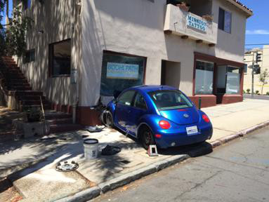Around noon on Friday, a driver ran into the building at 102 and 104 West Mission Street after exiting a driveway across the street. The driver was treated for minor-to-moderate injuries and taken to Cottage Hospital. A city building inspector has “yellow tagged” the building and access is limited until repairs are made.