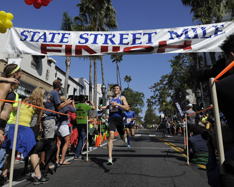 STATE STREET MILE: The 16th edition of the mile races through downtown Santa Barbara drew more than 1,000 participants last Sunday and featured some close finishes by the elite runners trying to grab a $1,000 prize. Jorge Jabaz, a 28-year-old distance coach at Concordia University in Irvine, was chasing Daniel Herrera with a block to go in the men’s race. “He looked like he was getting comfortable,” said Jabaz. “I thought positive and went for it.” Herrera, 22, was taken by surprise. “Oh, my gosh,” said Herrera, who graduates from UCLA this week. “He got me so late I couldn’t respond.” Both runners were timed in 3:54, but Jabaz got there first.