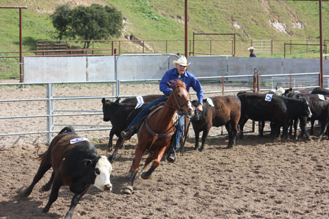 Team penning, like Willy, dates back to the early 1940s. It features 30 yearlings in trios sporting a number 0 to 9 on its back. Each team has three riders who have 90 seconds to identify their three numbered cattle, separate them, and herd them into a small pen at the far end of the arena. The team with the fastest time wins, and winners take home large, shiny belt buckles. The fast-paced sport requires good horsemanship as well as teamwork, precision, strategic planning, a good eye, and quick thinking.