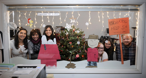 “It’s like working in a winter wonderland!” exclaimed Copy Chief Jackson Friedman (right). The Indy elves (many pictured here) have spared no ornament in spreading the good cheer. A handcrafted Charlie Brown Christmas decks the Copy Department, thanks to Diane Mooshoolzadeh (third from left), one of our multitalented copy editors. “I went a little Christmas crazy this year,” she confessed. “I always get super excited.” Bring on the eggnog!