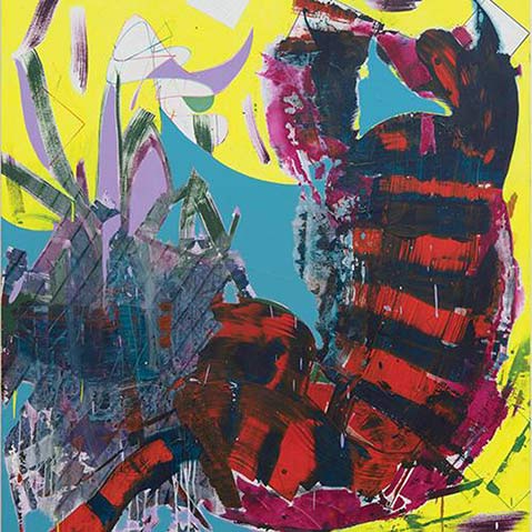 The Vietnamese-born, Pratt- and UCLA-educated artist was chosen for the 2004 Whitney Biennial and has pursued an idiosyncratic path ever since, creating work through innovative, highly process-oriented techniques and then labeling and showing these objects under fanciful, pop-surrealistic titles. For example, this show is named after a series of large paintings, the Aikido Dream series, featuring dark, expressionistic figures emerging from backgrounds lit with flashes of bright fluorescent color. Van Tran likes to promote his drawings into the realm of sculptural collage through the inclusion of elements taken from other media, such as clay from ceramics, zippers from textile design, and even holes punched with products from office-supply stores.