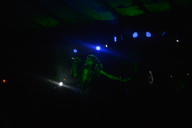 Friday night lit up with a dramatic storm of erotic electroclash beats and charged particles as Toronto’s Peaches headlined Hotel San Jose’s unofficial SXSJ under a dramatic lightning storm. Bedecked in furs and sparkles, the sex-positive gender-bashing electronic pioneer wasted no time heating things up under the pouring rain, asking “Has anyone been fucked today yet?” at the start of her set. From a duet with a drag queen named Becky to a drenched crowdsurf, Peaches’ set was one of the most empowered and empowering of the whole festival, not to mention rare – where else could one enjoin a mass chant of “Dick and balls!” in a downpour? With booming skies above and booming beats below, it was an unforgettable night.