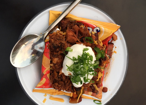 Nestled in the hipster haven on the corner of Haley and Laguna streets known as The Mill, Wildwood Kitchen is generating generous buzz around town for its artisan barbecue, most nights selling out of its popular dry-rubbed brisket and ’cue-glazed, fall-off-the-bone pork ribs. (We luckily got in our orders of both right before they ran out.) One must-try that is less subject to the volatile meat market is the Frito Pie. What polite society would classify as “comfort food,” this munchie medley off Wildwood’s starter menu mixes house-made chili, cheese, tender chunks of chopped meat (whatever’s not sold out yet when you order, presumably), and, of course, the titular chip, all served in the telltale red-and-yellow bag that’s littered dorm-room floors for time immemorial. Garnished with a hearty dollop of sour cream and sliced green onions, it’s part chili-cheese fry, part nacho, and all good, bro. $13. 410 E. Haley St., (805) 845-3995, wildwoodkitchensb.com.