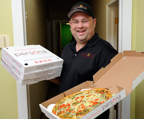 Earlier this year, Persona started doing delivery, so our offices gave the 12-inchers a shot last month, ordering a handful of different specialty combos off their list of 30-plus toppings, from chipotle chicken and carne to pulled-pork barbecue and pesto with peppadew peppers. The pies were as crispy and tasty as they are in the restaurant itself, which Baumel attributes to a special insert inside the box that keeps the pizza fresh and warm without it becoming greasy.