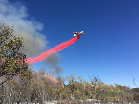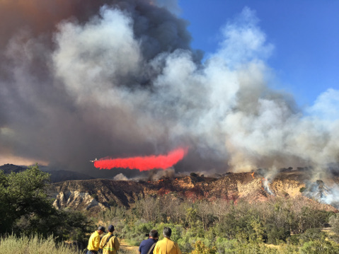 [Update, 6:49 p.m.]: At about 6:30 p.m., Santa Barbara County Fire spokesperson Mike Eliason reported that the fire was holding at about 500 acres with zero percent containment. Currently, 200 personnel are on scene. Twenty-five engines, four hand crews, two dozers, three water tenders, four air tankers, and one DC-10 responded, with more resources on the way.