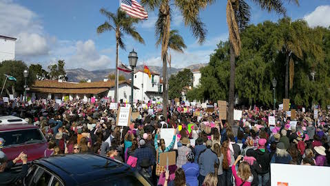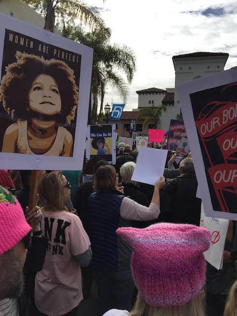 More than 6,000 protestors gathered, thronged, and rallied in De la Guerra Plaza this Saturday — far more than anyone can remember happening before, and way beyond what police and organizers alike expected — in response to the inauguration of Donald J. Trump as 45th President of the United States. Like the bigger marches taking place in Washington D.C., Los Angeles, and throughout the nation and the world, Santa Barbara’s rally was a women’s march, though many men participated and many issues other than women’s rights were championed.