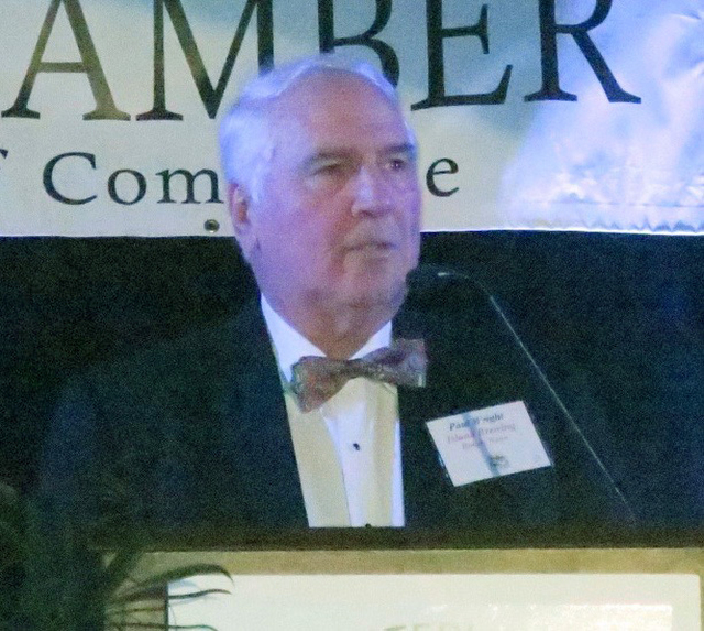 Chamber leadership was symbolically transferred from outgoing Board Chair Michael Ensign to Roland Rotz, who introduced the 2017 Chamber Board. Twenty Carpinterian nonprofits presented a Certificate of Merit Award to an individual they wished to honor. Narration was provided by Donna Lemere and Board Member Curtis Lopez while a brilliant spotlight illuminated the presenter and awardee at various tables throughout the venue. The evening was a delightful combination of small-town charm and first-rate show production.