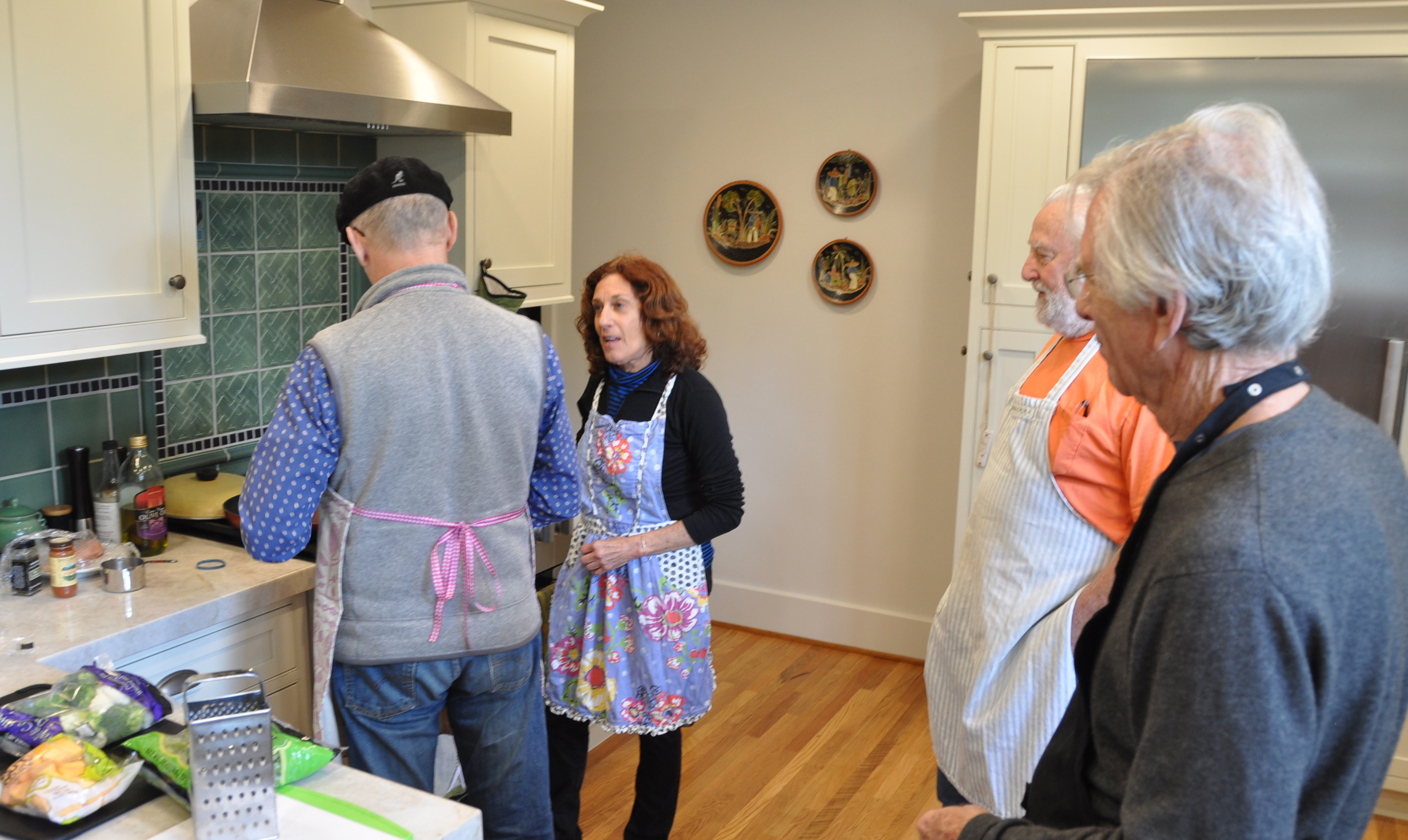 Laurie Zalk, the former longtime owner of Our Daily Bread and a brave, brave soul, has her work cut out for her. She’s leading a group of six middle-aged guys in an afternoon she’s billed Men Only: There’s Nothing to Eat in the Fridge.