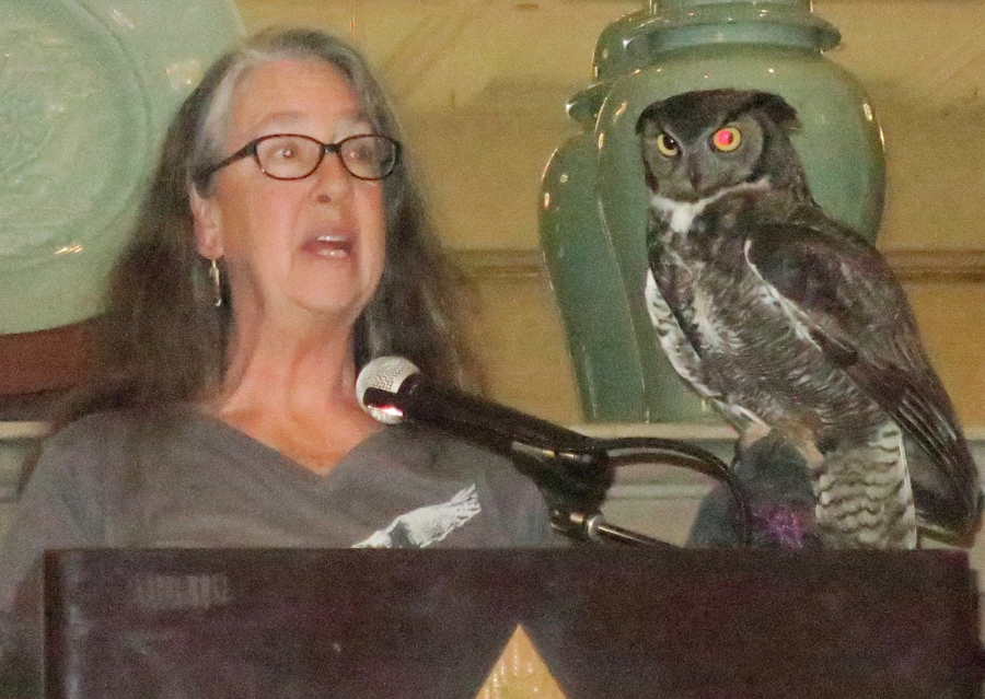Guest speaker Santa Barbara Zoo CEO Rich Block lauded the mission and work of SBWCN. He discussed the importance and complexity of conservation and how SBWCN, the Santa Barbara Zoo, and others each play an integral role. Block discussed the zoo’s work with island foxes, California condors, sea otters, snowy plovers, and red-legged frogs. Ojai Raptor Center Director Kim Stroud, with an owl perched beside her, also talked about the community of organizations working so well together here, with her organization taking in about 1,000 birds each year.