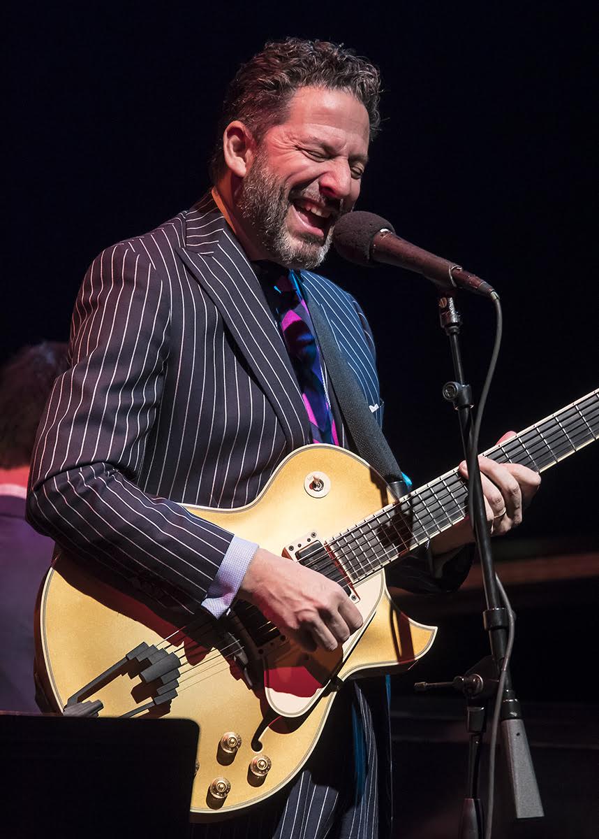 Sporting a new beard, wielding a seven-string custom guitar, and wearing a flashy pinstripe suit that he rather self-consciously referred to as left over from a production of Guys and Dolls, John Pizzarelli cut quite a figure on the Lobero Theatre stage on Thursday, March 23. Over the course of two substantial sets Pizzarelli and his band — Konrad Paszkudzki, piano; Mike Karn, bass; Kevin Kanner, drums — played sophisticated jazz that mostly confirmed that city slicker image, but in a good way. At other moments, however, the group went far beyond these expectations, especially when it came time for Pizzarelli to celebrate an intense recent creative partnership.